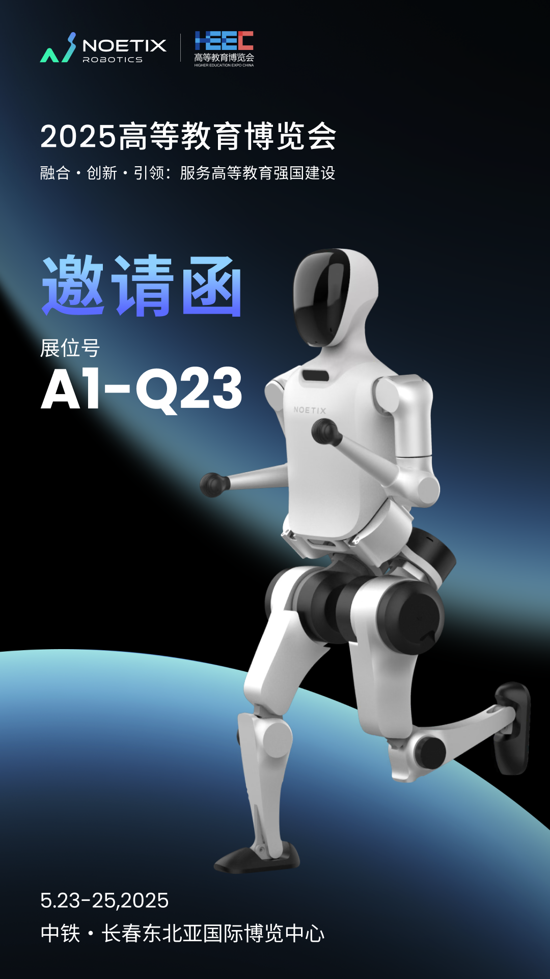 2025年5月23日至25日,松延动力(Noetix Robotics)将携马拉松亚军小顽童人型机器人N2亮相中铁·长春东北亚国际博览中心(展位号:A1馆A1Q23),参与“融合·创新·引领:服务高等教育强国建设”主题展会。作为聚焦智能家庭与教育场景的科技先锋,我们诚邀您共同探索人工智能与教育的深度融合!